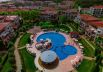 The holiday complex features four swimming pools, restaurant, coffee shop, pool bar, children’s playground, different kind of stores, gym, massage room, tennis court, soccer and basketball playground.
