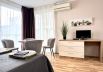 Apartments are for up to 4 persons. They are equipped with TV, satellite channels, air-conditioner, dining area, kitchen area: refrigerator, microwave, cooktop, toaster, kettle, dishes, baby cot on request.