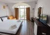 The hotel offers 12 spacious rooms and 2 apartments with panoramic terraces. All accommodations are air-conditioned and equipped with cable TV, telephone, and wireless internet.