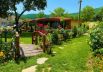 The walls are decorated with unique paintings by artists, with natural wood furniture, accessories giving style, incredibly warm and cozy atmosphere. Some rooms have verandas and guests can enjoy their morning hot coffee in the company of birds and their song. The house has a beautiful view of the mountains and rocks and an amazing summer garden with lots of vegetation and flowers. The valley of the wolf also has a Happy Feather Zoo, where rabbits, guinea pigs, exotic birds, ducklings, etc. jump freely, so used to the guests that they feed on the hands of our visitors.