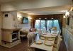 - 1st floor - large living room with fireplace and soft furniture, fully equipped kitchen with retro design, dining room with a large table for 10 people, one bedroom and one bathroom.