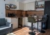 The kitchen is fully equipped with modern amenities including a refrigerator, microwave, coffee maker, and a hot plate. We've stocked the kitchen with everything you need, from cutlery to plates and glasses, ensuring you have everything necessary to prepare a meal.