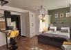 This newly built studio features a luxurious king-size bed and a sofa that can be converted into a bed, accommodating a third person if needed