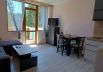 The apartments have a bedroom with a double bed and a large living room with an equipped kitchenette, for self-catering, for those seeking privacy and relaxation. The living room has a sofa bed, a dining table with 4 chairs and a TV with cable TV. The terraces are large with views of the tall pine trees in the Rhodope Mountains. The bathroom has a shower cabin and toilet. The furniture is new and comfortable.