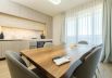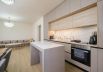 The kitchen is fully equipped with a dishwasher, an oven, a coffee machine and other necessary amenities.