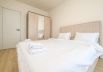Ideal for families or groups, the apartment features a large double bed in one bedroom and another large double bed in the second bedroom. The living room is cozy with a comfortable sofa and a dining table.