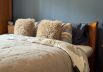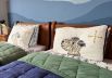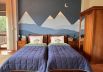 2 bedrooms: one master with a double bed and one children’s room with two single beds, custom hand-painted with a mountain theme.