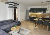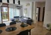 The living room has a fully equipped kitchen, dining area and sofa bed.