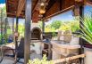 We also have a separate kitchen with a dining room for gatherings, with a speaker for a party, as well as a summer bar with a barbecue and a large table.