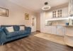 The kitchen is fully equipped with a dishwasher, oven, microwave, coffee machine and other basic kitchenware. The apartment also includes a washing machine, dryer and iron with ironing board. The bathroom is stocked with free toiletries, a hairdryer and towels.