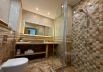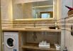 The two bathrooms are finished with marble tiles, offering walk-in showers, modern sanitary ware and carefully considered details for added comfort.