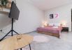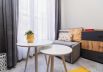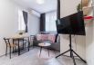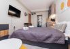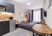 The studios have a cozy atmosphere, suitable for relaxing after a long day in the city. The space is equipped with everything you need for your comfort, including a comfortable seating area, a flat-screen TV and a fully equipped kitchen.