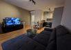 The bedroom has a comfortable bed, a large wardrobe and a 55-inch TV. Additionally, a sofa bed is provided in the living room.