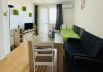 The apartment has a living room with a sofa bed and a dining area, an equipped kitchenette, a TV, air conditioning, an equipped kitchenette, one bedroom, a terrace and a bathroom.