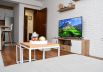 The apartment is fully renovated, modern and very spacious. It’s located in the heart of the ski zone - only 1 minute walk from the gondola. The space is on a quiet street, with east exposure, sunny and very warm. There is one bedroom, spacious living room, fully equipped kitchen with dining room, bathroom, entrance hall and a cozy balcony. The apartment is in the excellent maintained apart hotel Comfort with reception, sauna, fitness, hot tub, ski room, parking space and an option for a breakfast.
