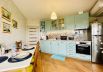The sofa in the kitchen is comfortable and normally wide for a child up to about 8-10 years old. It does not stretch.