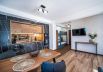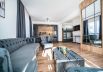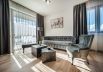 - spacious living area with modern sofas, coffee table, dining area with dining table and chairs and fully equipped kitchen (incl. washing machine, coffee machine and dishwasher);