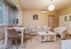 It has a cozy living room with a sofa bed, a dining area, a TV, an equipped kitchenette, one bedroom and a bathroom.