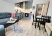 This cozy mountain apartment has one bedroom, a living room with a sofa bed, a TV, a dining area, an equipped kitchenette and a bathroom.