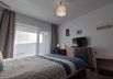 Cozy apartment located in a multifunctional building in close proximity to many shops, within walking distance to the hospital and the city center. The building has a fitness center, restaurant and pastry shop with a children's corner. The complex has a retail park with shops and convenient parking. The apartment also offers a wonderful view of the mountains, with a small terrace for your morning coffee. It has one bedroom, comfortable and newly renovated, with a large wardrobe, space for a suitcase, a desk and a chair, as well as a TV and access to the terrace. The living room is spacious with an open-plan kitchen, dining room equipped with a dining table suitable for 4 people and a place to relax with a corner sofa, coffee table and TV, where you can enjoy peaceful and relaxing evenings. The sofa in the living room is a sofa bed, comfortably accommodates two people . The bathroom is modern and spacious, with enclosed shower.