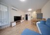 It has a spacious living room with a dining area, air conditioning, TV, sofa bed, fully equipped kitchenette, terrace, one bedroom and bathroom.