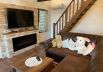 The villa has a living room with a fireplace and a sofa bed, a TV, an equipped kitchen and four bedrooms.