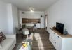 Air conditioners, washing machine, dishwasher, coffee machine, stove, refrigerator, kitchen equipment, iron, ironing board, hairdryer, towels, bathrobes, TV, internet.