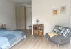 Guests can enjoy the shared living room and kitchen, as well as an outdoor terrace—perfect for morning coffee or evening relaxation overlooking the garden.