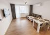 The apartment is new and quite cozy. It consists of 2 bedrooms, a living room with a sofa bed, a kitchen with all household amenities, a bathroom, a washing machine and a dryer. Each room has air conditioning, and the living room and one bedroom have smart TVs.