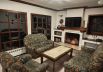 A second living room with a fireplace, home cinema projector, and board games, offering the perfect setting for evening entertainment and relaxation. This floor also features a sixth bedroom and a bathroom with toilet and bathtub.