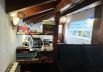Spacious living room with a fireplace and a fully equipped kitchen. Large windows overlook the inner courtyard, creating a bright and welcoming space for gathering and relaxation.