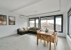 - spacious living room with sofas and a dining table;
