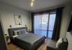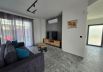 The living room has a 55-inch TV, a sofa bed (140x200 cm), a dining table that turns into a bar, a modern, fully equipped kitchen with an induction hob, oven, dishwasher and washing machine, a Nespresso coffee machine with capsules, an electric kettle for hot water, a toaster and everything you need for your unforgettable holiday.