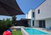 The villa has sun loungers with comfortable soft cushions, poufs and umbrellas, two verandas. Outdoor coffee corner, covered veranda with dining table and barbecue.