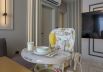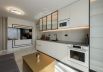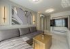 The interior impresses with warm tones, modern LED lighting and a feeling of coziness. The apartment has two rooms - a spacious living room with a 75-inch smart TV and a bedroom with a second TV. The kitchen is fully equipped - dishwasher, refrigerator, washer with dryer, hob, oven and dishes.