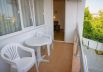 We offer our guests 4 rooms with one double bed, 9 rooms with two separate beds, 6 rooms with three beds, 3 apartments with two beds + sofa bed for two. All rooms are spacious with panoramic views and there is an option for a one more bed to be added. They have large private balconies with a table and chairs for the convenience of tourists. Each room has air conditioning, cable TV, refrigerator, wireless internet, private bathroom.